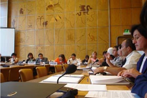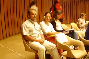 En la Sala de Debates de la OIT en una actividad del programa del Diplomado en Derechos Económicos, sociales y culturales y Derecho a la Educación (Ginebra, Suiza, 2005).